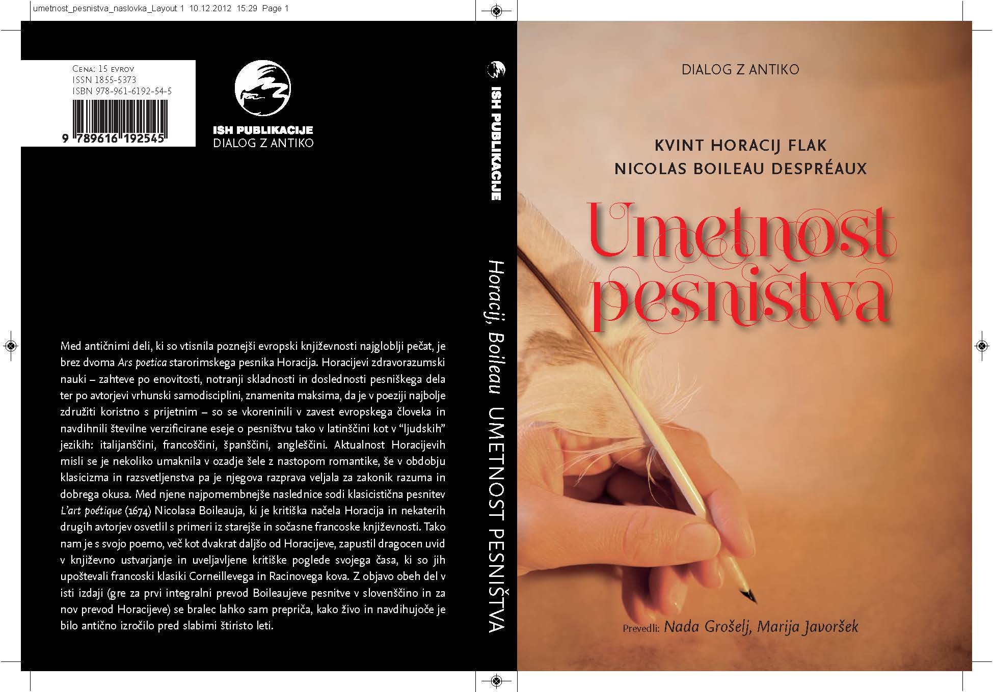 Med antičnimi deli, ki so vtisnila poznejši evropski književnosti najgloblji pečat, je brez dvoma Horacijeva Ars poetica. Horacijevi zdravorazumski nauki – zahteve po enovitosti, notranji skladnosti in doslednosti pesniškega dela ter po avtorjevi vrhunski samodisciplini, znamenita maksima, da je v poeziji najbolje združiti koristno s prijetnim – so se vkoreninili v zavest evropskega človeka in navdihnili številne verzificirane eseje o pesništvu tako v latinščini kot v »ljudskih« jezikih: italijanščini, francoščini, španščini, angleščini. Aktualnost Horacijevih misli se je nekoliko umaknila v ozadje šele z nastopom romantike, še v obdobju klasicizma in razsvetljenstva pa je njegova razprava veljala za zakonik razuma in dobrega okusa. Med njene najpomembnejše naslednice sodi klasicistična pesnitev L’art poétique (1674) Nicolasa Boileauja, ki je kritiška načela Horacija in nekaterih drugih avtorjev osvetlil s primeri iz starejše in sočasne francoske književnosti. Tako nam je s svojo poemo, več kot dvakrat daljšo od Horacijeve, zapustil dragocen uvid v književno ustvarjanje in uveljavljene kritiške poglede svojega časa, ki so jih upoštevali francoski klasiki Corneillevega in Racinovega kova. Z objavo obeh del v isti izdaji (gre za prvi integralni prevod Boileaujeve pesnitve v slovenščino in za nov prevod Horacijeve) se bralec lahko sam prepriča, kako živo in navdihujoče je bilo antično izročilo pred slabimi štiristo leti.